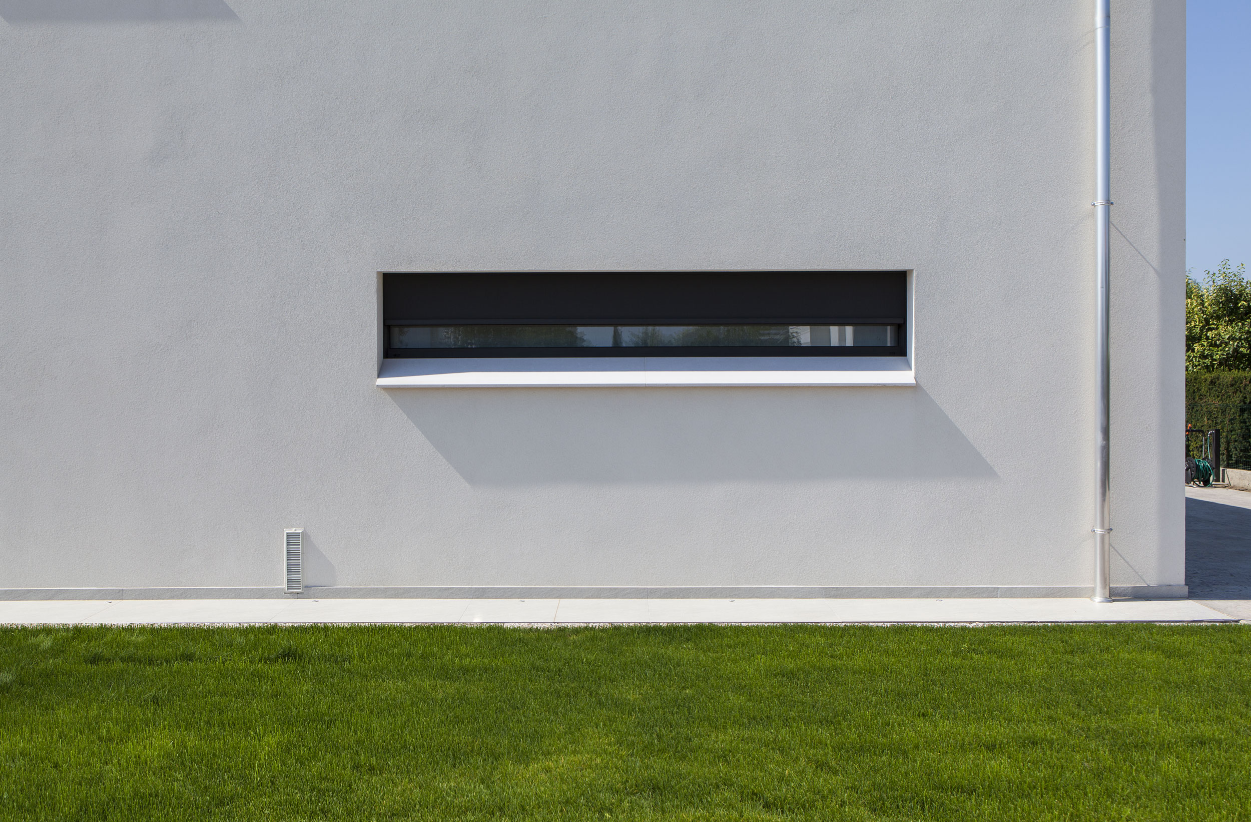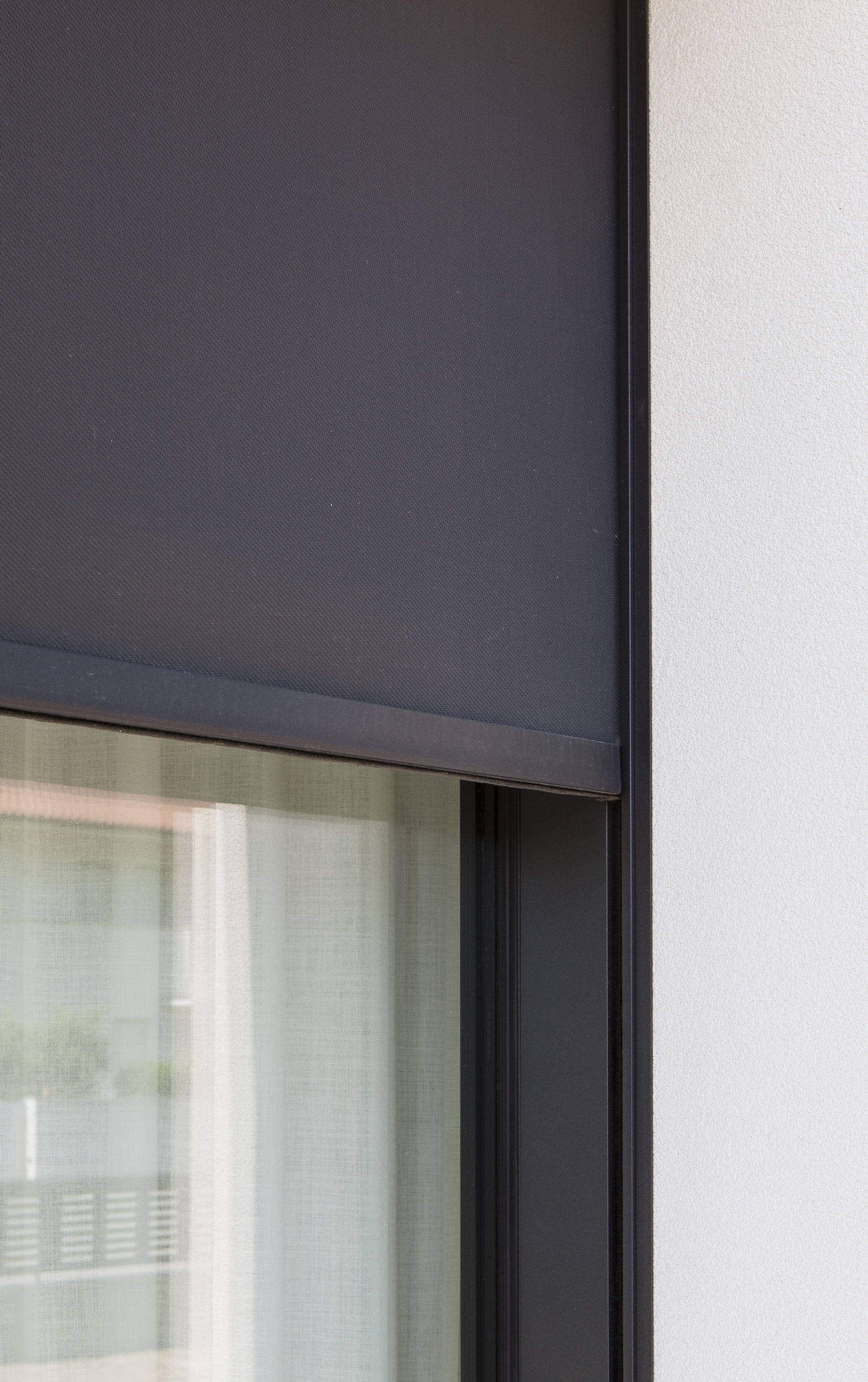 Il sistema selezionato per questo progetto è caratterizzato dalla scelta di profili minimali per il sistema a battente. Le ante a scomparsa, così come i sistemi oscuranti, permettono un’estetica totalmente incassata, con la visione del solo telo esterno, in linea con le finiture scelte.