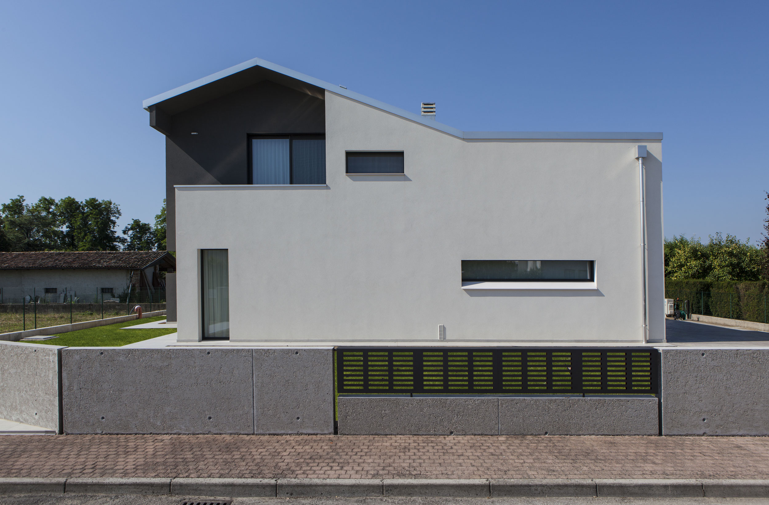 Villetta singola situata tra le province di Treviso e Venezia, inserita in un contesto residenziale caratterizzato da uno stile moderno e curato nei minimi dettagli.
